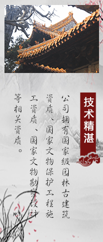 堅持質量為先,信譽為重,管理為本,服務為誠的理念。本著對社會、對建設單位負責的原則,將工程質量、安全生產(chǎn)放在工作的重要位置。我們堅持發(fā)展古建藝術,弘揚民族文化,作為企業(yè)的經(jīng)營管理理念。曲阜古建筑義德古建始終秉承“科學管理,創(chuàng)精品工程,打造古建筑行業(yè)標準”的方針,追求更高質量,為文物保護、傳統(tǒng)建筑事業(yè)做出貢獻。
